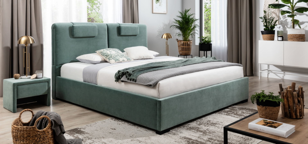 Na zdjęciu łóżko Boho w rozmiarze 160/200, obicie: SPECTRA 01, FARGOTEX