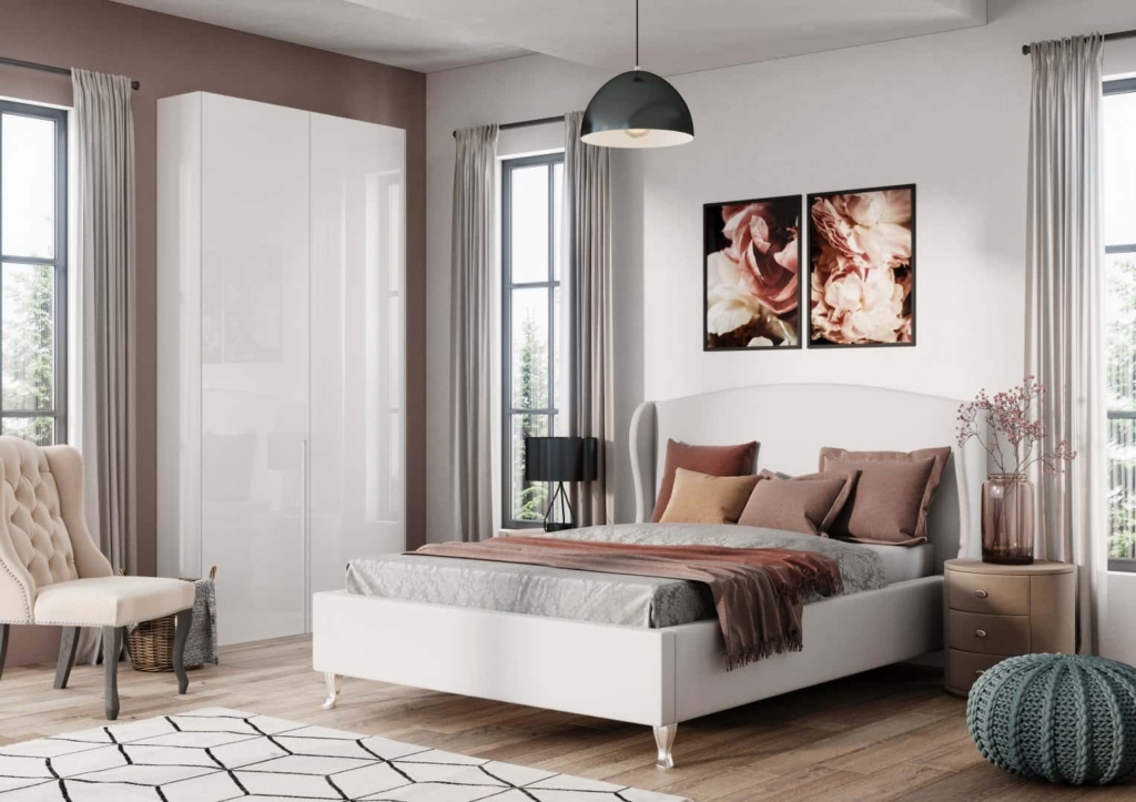 Łóżko Genua z pewnością przypadnie do gustu wielbicielom stonowanych klasycznych aranżacji z nutą romantyzmu. Jego niewątpliwą ozdobą jest wysoki skrzydłowy zagłówek o harmonijnie zaokrąglonej linii i subtelne nóżki. Sprawi, że Twoja sypialnia będzie naprawdę wyjątkowa.