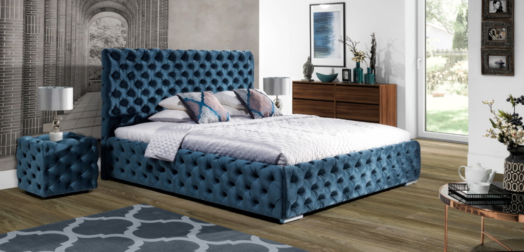 Piękne, eleganckie łóżko bardzo gęsto i głęboko pikowane, o miękkiej, zaokrąglonej linii wezgłowia i podstawy. Mistrzowski model wymagający w produkcji bardzo dużego doświadczenia. Idealny do wytwornych, stylowych sypialni.