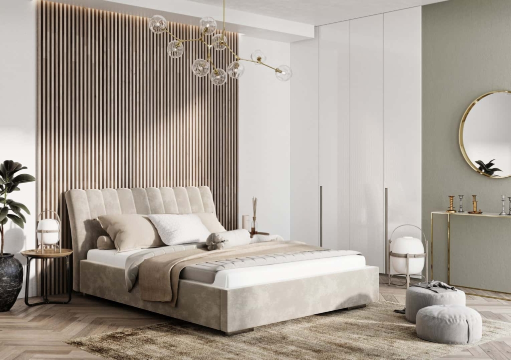 Wyjątkowy model Naomi to idealny wybór do wnętrz, które mają być oazą spokoju i przytulnej atmosfery. Delikatnie wygięte wezgłowie nadaje całości subtelności. Solidne wykończenie zestawione z nowoczesnym wzornictwem będzie idealnie pasować do każdej sypialni.