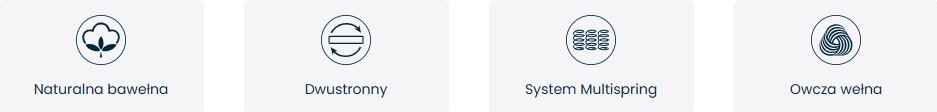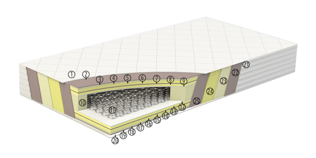 Materac z opatentowaną konstrukcją wkładu sprężynowego Multispring, składający się z wielu połączonych ze sobą sprężyn, wykonanych z jednego bardzo długiego drutu, gwarantuje nieporównywalną trwałość oraz doskonałe radzenie sobie nawet z bardzo dużymi obciążeniami.