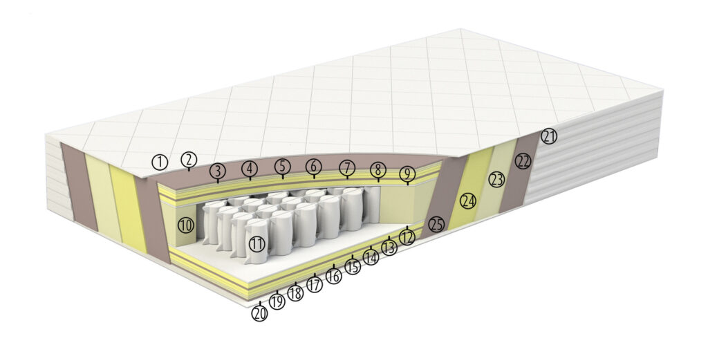 Pianka D18 – to wysokoelastyczna pianka o podwyższonej twardości, dzięki czemu zapewnia odpowiednią stabilność i sztywność całej konstrukcji. Dzięki użyciu tego materiału nie odczuwamy nadmiernego zagłębiania się a jednocześnie kręgosłup jest utrzymany w prawidłowej pozycji przez całą noc. Niezwykle trwały i bardzo dobrze przepuszczający powietrze materiał. W materacu Bowery zostało użyte kilka warstw tej pianki.