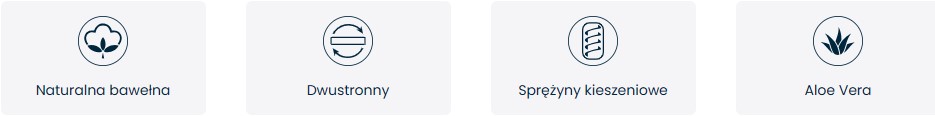 Pokrycie materaca wykonane z wysokiej jakości tkaniny z Aloe Vera jest niezwykle przewiewne, przyjemne w dotyku i wytrzymałe, przez co nie zmienia się wraz z upływem czasu. Materac idealnie podpiera kręgosłup, dzięki czemu zapewnia zdrowy i komfortowy sen
