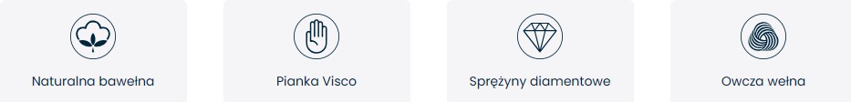 To wyjątkowe odczucie osiągnięte zostało dzięki zastosowaniu tzw. diamentowej sprężyny oraz materiałom użytym do wykonania materaca. Naturalna bawełna i wełna wraz z pianką visco wykonaną w najnowszej technologii, gwarantują poczucie najwyższej jakości snu